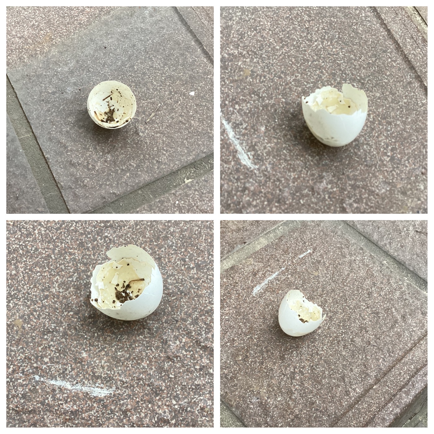 ↑我が家の庭で、鳥の卵の殻のような物を発見しました。